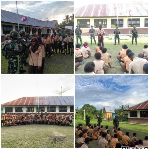 Bangun Jiwa Nasionalisme Satgas Yonif 642/Kps Bina Anak Papua Melalui Gerakan Pramuka