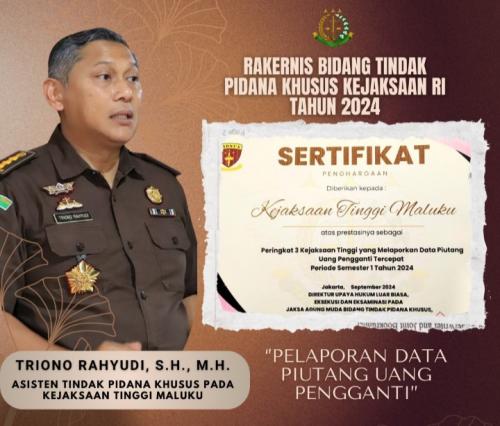 Bidang Pidana Khusus Kejati Maluku Terima Penghargaan Terbaik III