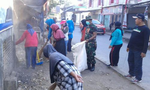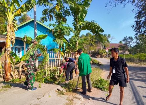 Babinsa Koramil 01/Somba Opu Kodim 1409/Gowa Bersama Warga Gotong Royong Bersihkan Lingkungan