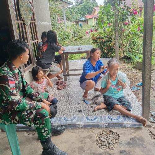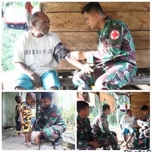 Minggu Ceria, Personel Satgas Yonif 122/TS Berikan Yankes dan Bagikan Sendal Kepada Warga