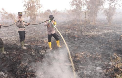 Kapolres Inhil Turun Padamkan Karlahut di Kecamatan Batang Tuaka