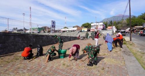 Peduli Lingkungan, Personil Koramil 1409-05/Pallangga laksanakan Karya Bakti Bersama Tripilar