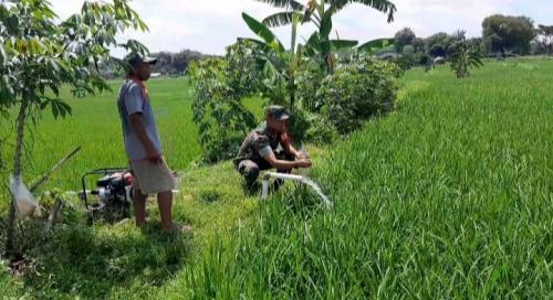 Babinsa Bantu Pengairan Sawah Guna Optimalkan Keberhasilan Panen Padi
