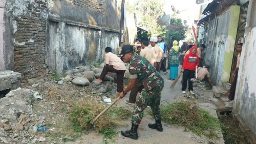 Gotong Royong Bersama Warga, Babinsa Koramil 01/Somba Opu Bersihkan Lingkungan dan Saluran Air
