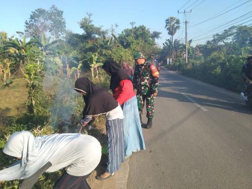 Babinsa Gotong Royong Laksanakan Karya Bakti Pembersihan Lingkungan