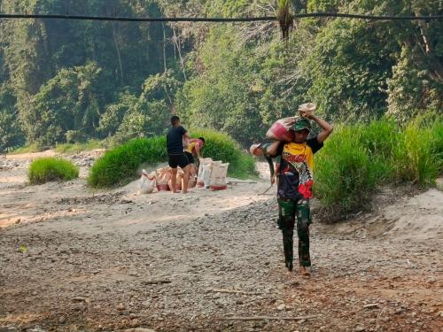 Alat Sederhana Karung Bekas Menjadi Solusi Anggota Satgas TMMD Ke 121 Kodim 1210/Landak Angkut Material Pasir