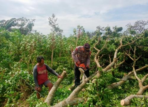 Angin Kencang Melanda Bobotsari, Polisi Bantu Evakuasi Pohon Tumbang