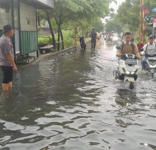 Bhabinkamtibmas Joglo Kembangan Jakarta Barat Lakukan Pengecekan Genangan