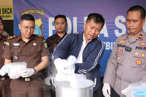 Polres Tebing Tinggi Gelar Pemusnahan Barang Bukti Narkoba Hasil Ungkap Kasus Akhir Juni 2024