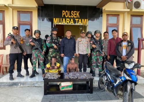 Personel Satgas Yonif 122/TS & Polsek Muaratami Amankan Pelaku Pemilik 35 Paket Ganja di Moso Papua
