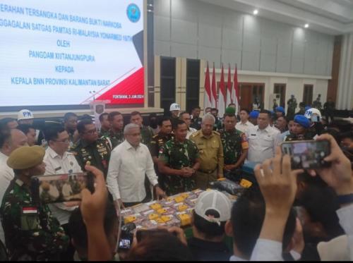 Dansatgas Pamtas RI-Mly Yonarmed 16/TK Hadiri Penyerahan Sabu 21,2 Kg & Lima Tersangka Kepada BNN RI