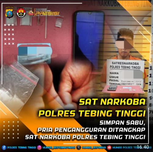 Simpan Sabu, Pria Pengangguran Ditangkap Sat Narkoba Polres Tebing Tinggi