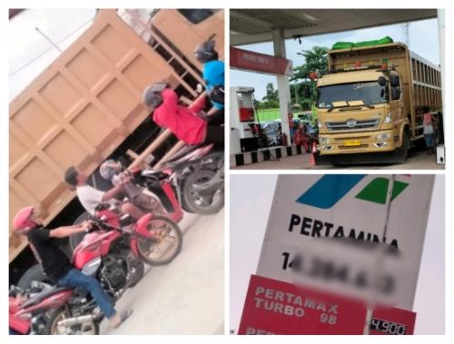 Diduga Langgar Aturan, Tronton Isi BBM Subsidi di SPBU Pelalawan