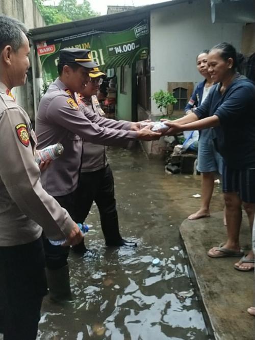 Banjir di Kebon Jeruk, Kapolsek dan Jajaran Terjun Langsung Berikan Bantuan ke Warga