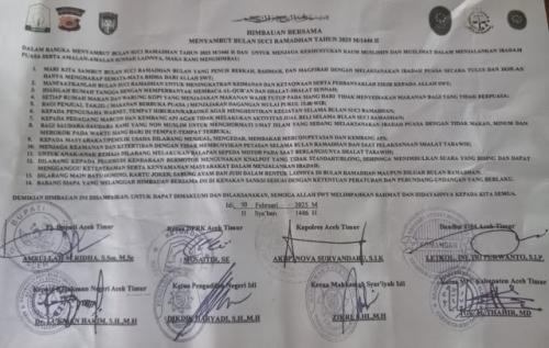Muspida Aceh Timur Tetapkan Himbauan Ramadhan 1446 H