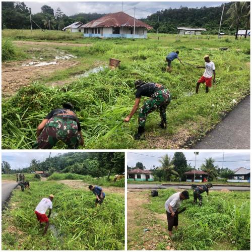 Lestarikan Budaya Gotong Royong Personel Pos Yamor Laksanakan Karya Bakti Bersama Masyarakat