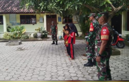 Babinsa dan anggota Koramil 09/Sambungmacan Kodim 0725 Latih Siswa/i SDN untuk Upacara Bendera