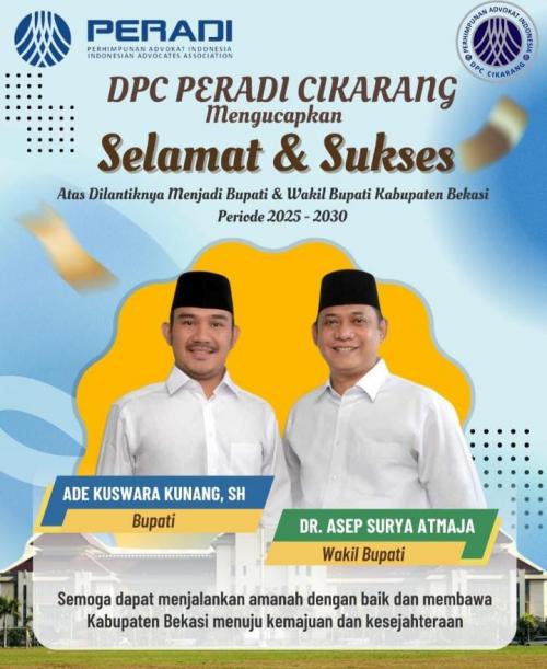 PERADI Cikarang Ucapkan Selamat Atas Pelantikan Bupati dan Wakil Bupati Bekasi Periode 2025-2030