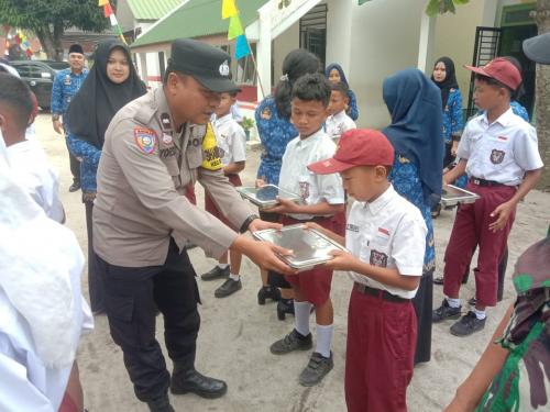 Polres Sergai Dampingi Peninjauan Perdana Makan Bergizi Gratis di SD Negeri 106840
