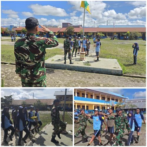 Tingkatkan Disiplin Siswa, Satgas Yonif 641/Bru Ajarkan Tata Cara Baris Berbaris di SMP Negeri 1 Wamena