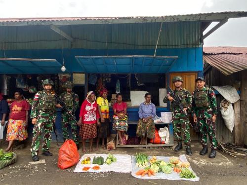 Dorong Pertumbuhan Ekonomi, Satgas Yonif 641/Bru Borong Hasil Tani Mama-Mama Papua