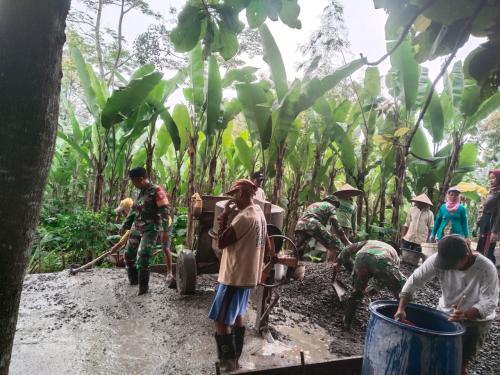 Pra TMMD Ke 123 TNI dan Warga Desa Kalinanas Sudah Kebut Betonisasi