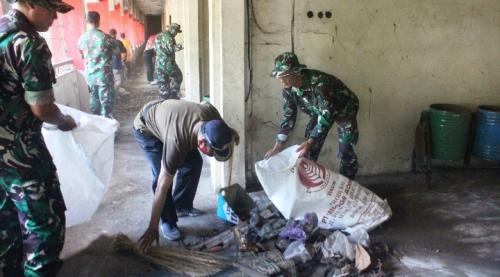 HUT TNI ke 78, Kodim Boyolali Bersihkan Pasar Sunggingan