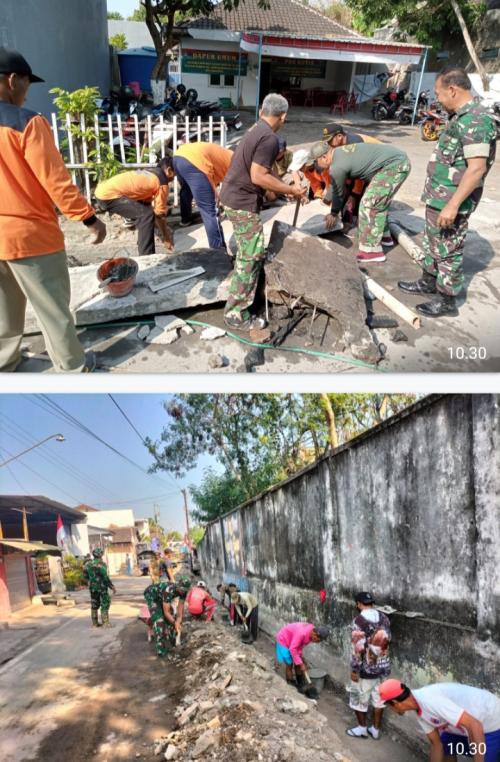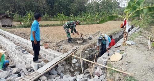 Babinsa Nogosari Turut Serta Karya Bhakti Bangun Talud