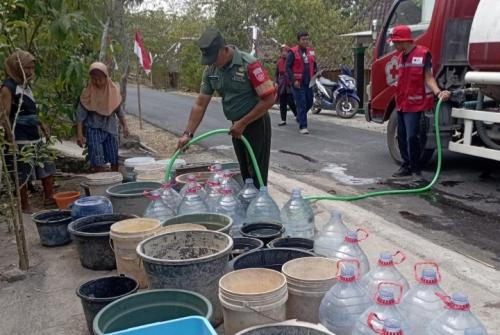 Upaya Atasi Kekeringan, Babinsa Bantu Distribusikan Air Bersih Kepada Warga