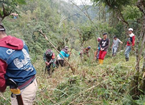 Atasi kesulitan Warga, Babinsa Koramil 1409-07/TB Bantu Perintisan Jalan Tani.