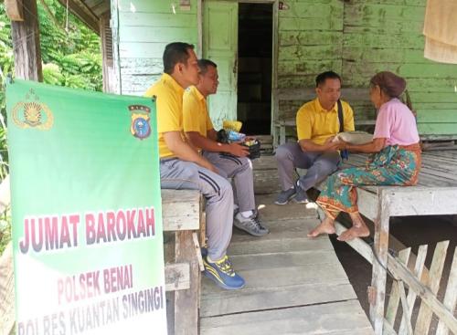 Kapolsek Benai Kuansing Salurkan Bantuan Sembako Kepada Warga Kurang Mampu