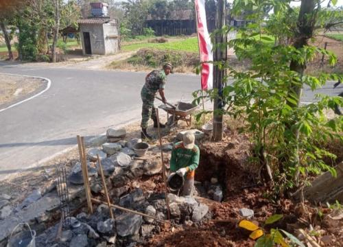 Wujud Nyata Babinsa Gotong Royong dalam Pembangunan Talud