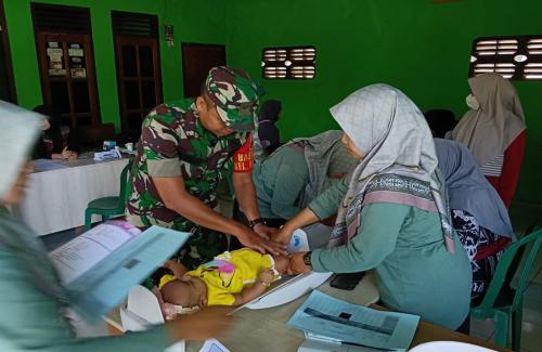 Babinsa Kauman, Cegah Stunting Dampingi Posyandu di Srengat