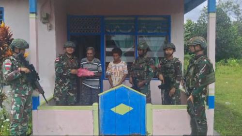 Satgas Yonif 642/KPS Berikan Sembako Kepada Masyarakat Kp Sanggwar