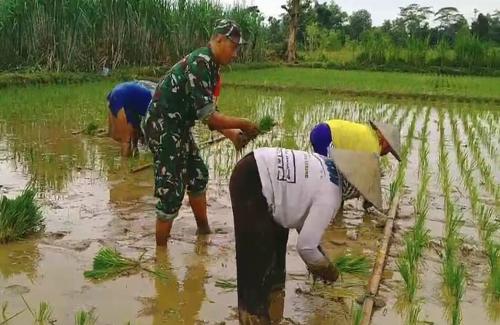 Babinsa Bendorejo Udanawu Dampingi Tanam Padi dan Beri Semangat pada Poktan Maju Tani