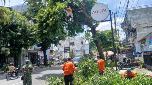 Babinsa Kratonan Bantu Jaga Kelancaran Arus Lalu Lintas Saat Pemangkasan Pohon