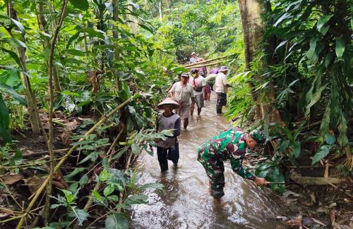 Babinsa Desa Jiwut Bersama Warga Bersihkan Sumber Mata Air untuk Irigasi Sawah