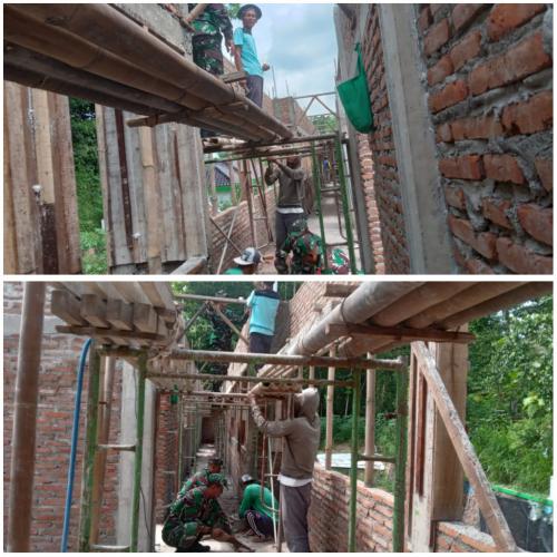 Babinsa beserta Anggota Koramil 12/Gesi Kodim 0725/Sragen Berperan Aktif Dalam Pembangunan Sekolah