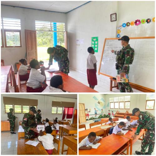 Cerdaskan Generasi Bangsa, Satgas Yonif 641/Bru Berikan Bantuan Tenaga Pengajar untuk SD Kelila