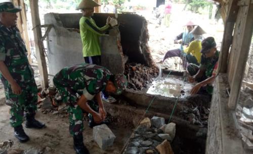 Bersama Warga, Babinsa Ds Cemeng Gotong-royong Bangun Pondasi Rumah Sumitro