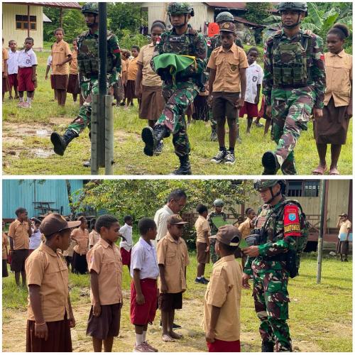 Satgas Yonif 641/Bru Ajarkan Jiwa Disiplin dan Latihan PBB Kepada Para Murid SDN 1 Elelim