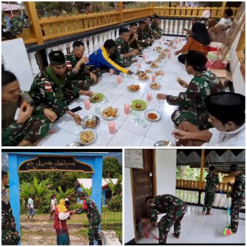Pos Teluk Etna Satgas Yonif 642/Kps Laksanakan Pembersihan Masjid dan Buka Bersama Warga