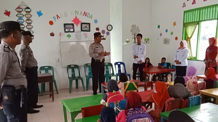 Tebing Tinggi - Kasat Binmas Polres Tebing Tinggi AKP. B.S.M Tarigan melaksanakan sambang ke sekolah Paud Ananda yang berada di Dusun IV Desa Kuta Baru Kecamatan Tebing Tinggi Kabupaten Serdang Bedagai, Rabu (30/08/2023).