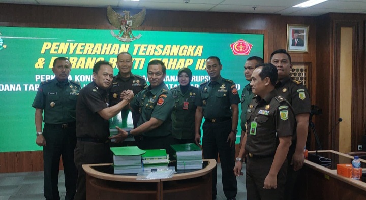 Jakarta - Tim Penyidik Koneksitas pada JAM PIDMIL telah melaksanakan serah terima tanggung jawab tersangka TN dan barang bukti (Tahap II) dalam perkara pengadaan lahan pada Tabungan Wajib Perumahan Angkatan Darat (TWP AD) di Karawang dan Subang, Jawa Barat tahun 2019 s/d 2020.