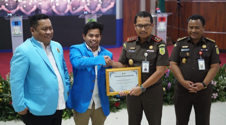 Serang - Kepala Kejaksaan Tinggi (Kajati) Banten Dr. Didik Farkhan Alisyahdi mendapatkan piagam penghargaan atas Penegakan Hukum yang Berorientasi pada Keadilan dan Hati Nurani, yang diberikan oleh Ketua DPD Komite Nasional Pemuda Indonesia (KNPI) Banten Ahmad Jayani, bertempat di Aula Kejaksaan Tinggi Banten, Rabu (20/12/2023).
