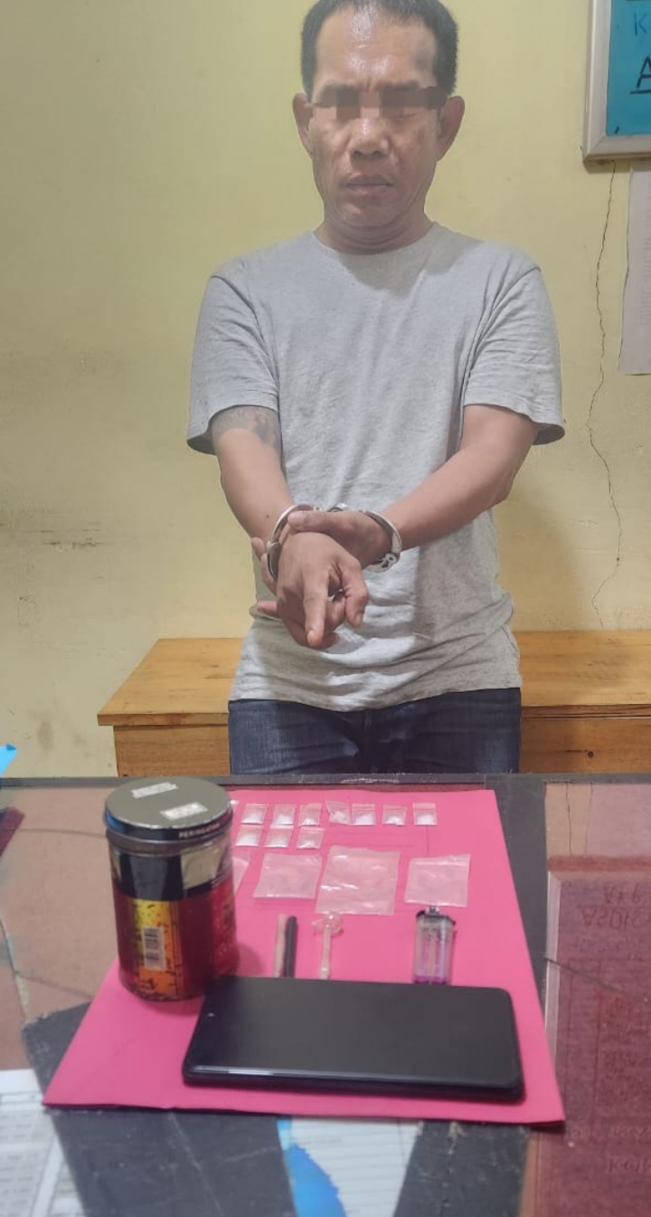 Kampar - Polsek Siak Hulu berhasil menangkap pria berinisial FJ alias F (50) tersangka tindak pidana pengedar narkoba jenis shabu seberat 3,73 gram.