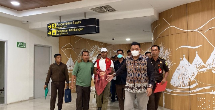 Tim TABUR mengamankan Aris Taneo di Bandar Udara Internasional El Tari Kupang, Senin (29/1/2024).