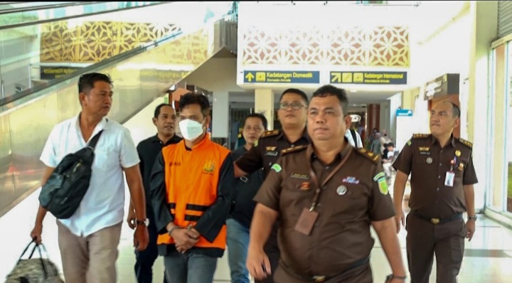 Pekambaru - Tim Tangkap Buron (TABUR) dan Tim Penyidik Pidsus Kejati Riau menjemput DPO Tersangka FA di Bandara Internasional Sultan Syarif Kasim II, Kota Pekanbaru, Provinsi Riau, Rabu (31/1/2024).