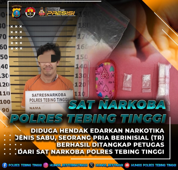 Tebing Tinggi - Diduga hendak edarkan narkotika jenis sabu, seorang pria berinisial TR (31) berhasil ditangkap petugas dari Sat Narkoba Polres Tebing Tinggi, pada hari Selasa lalu (20/02/24) sekitar pukul 18.00 WIB.