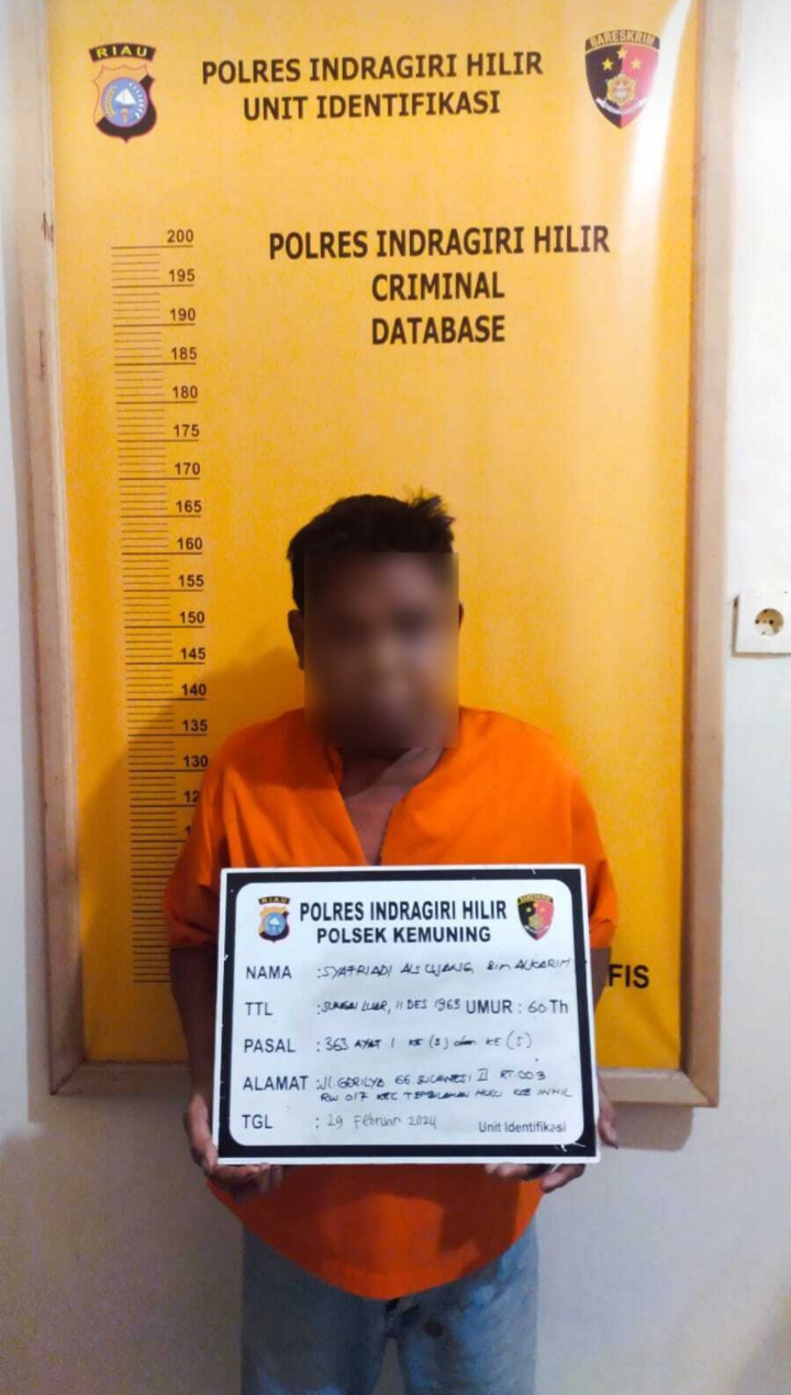 Kompol TEGUH juga menuturkan, bahwa pelaku adalah pria berinisial S (60 thn) alias Ujang. Ia berasal dari Desa Tembilahan Hulu Kabupaten Indragiri Hilir (INHIL) Riau.